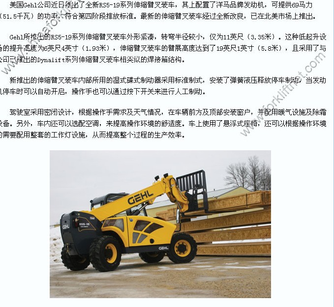 Gehl全新伸縮臂叉裝車(chē)符合第四階段排放標(biāo)準(zhǔn)