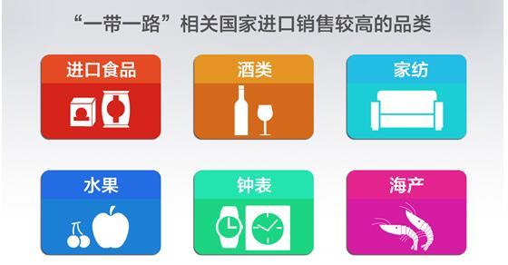 2、進(jìn)口食品、酒類、家紡、水果、鐘表、海產(chǎn)是“一帶一路”相關(guān)國(guó)家進(jìn)口,銷量最高的品類。