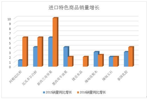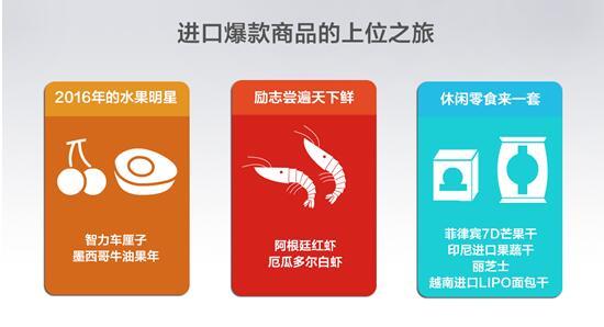 作為2016年的水果明星,智力車(chē)?yán)遄印⒛鞲缗S凸?016年走進(jìn)了中國(guó)的千家萬(wàn)戶。此外,阿根廷紅蝦、厄瓜多爾白蝦等進(jìn)口海產(chǎn)也走上了百姓餐桌,特別是各種節(jié)日期間,銷量大幅上升。菲律賓7D芒果干、印尼進(jìn)口果蔬干、麗芝士,越南進(jìn)口LIPO面包干等食品也暢銷全國(guó),成為城市消費(fèi)者喜愛(ài)的休閑零食。