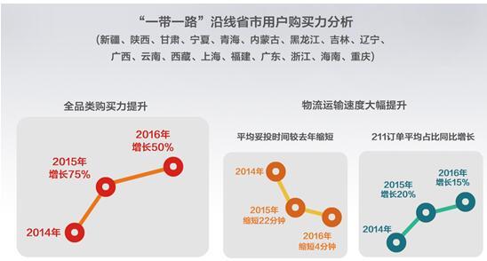 2017年5月15日,京東數(shù)據(jù)研究院發(fā)布《2017“一帶一路”跨境電商消費(fèi)趨勢(shì)報(bào)告》。通過(guò)跨境電商消費(fèi)大數(shù)據(jù),發(fā)現(xiàn)中國(guó)與“一帶一路”沿線及參與國(guó)家網(wǎng)絡(luò)民間商貿(mào)的消費(fèi)特點(diǎn)、最新趨勢(shì),描繪由跨境電商連接起來(lái)的“網(wǎng)上絲綢之路”。
