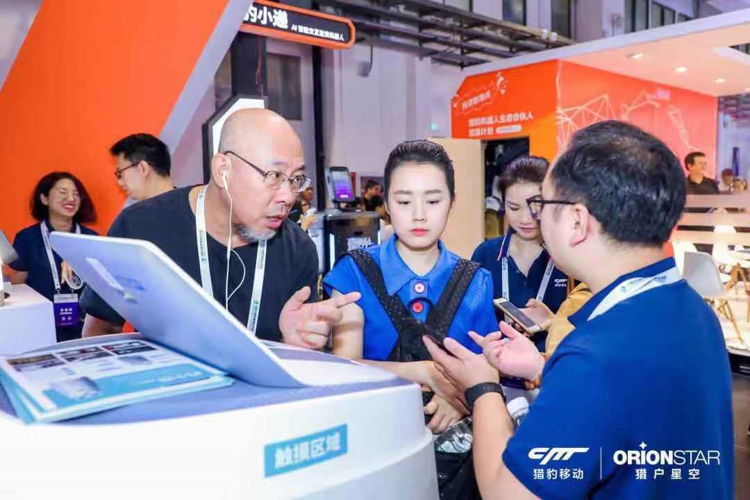 (資料圖:2019WRC現(xiàn)場(chǎng),獵豹移動(dòng)智能服務(wù)機(jī)器人“私域定制”模式備受關(guān)注)