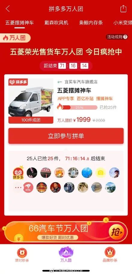 6月3日晚8點30分,拼多多宣布正式上線“五菱榮光售貨車”,首批上線的售貨車共計100臺,拼多多將為每臺車補貼3000元油卡。消費者可通過拼多多秒殺頻道、萬人團等入口進行選購并享受補貼。