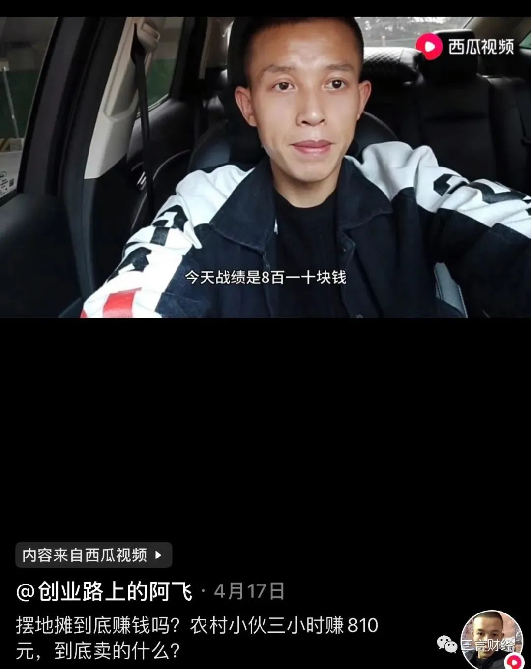 有小伙拍短視頻記錄自己靠擺地攤三小時營業(yè)額810元;