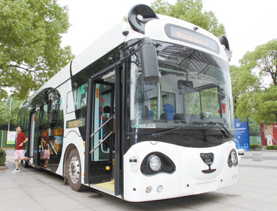 “智能熊貓巴士”無人駕駛公交車亮相江蘇常州國際會展中心。