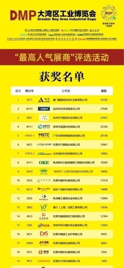 2020DMP工博會(huì)人氣展商新鮮出爐,C位出道,人氣爆棚