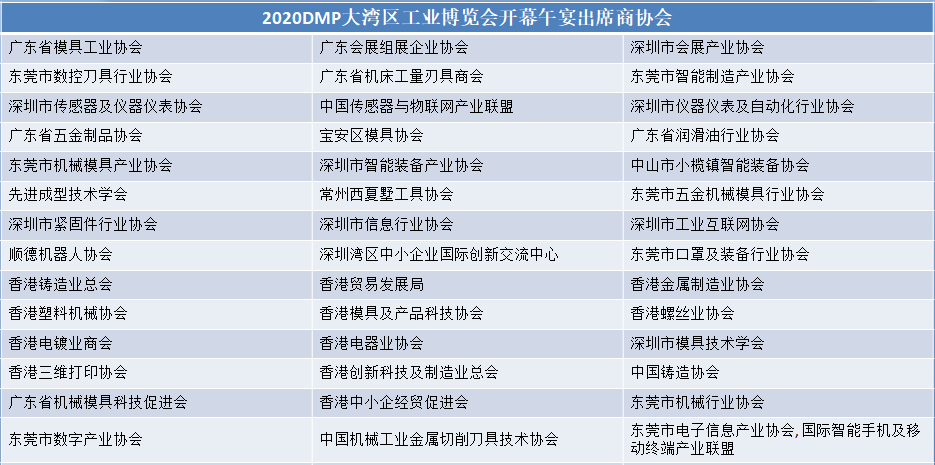 本屆DMP工博會(huì)得到了70多家商協(xié)會(huì)的鼎力支持,表示對(duì)DMP大灣區(qū)工業(yè)博覽會(huì)的發(fā)展充滿信心,并表達(dá)了對(duì)DMP工博會(huì)的美好祝愿。中午時(shí)分,部分商協(xié)會(huì)領(lǐng)導(dǎo)及嘉賓出席了DMP工博會(huì)開幕午宴,以下為出席午宴的商協(xié)會(huì)名單(排名不分先后):