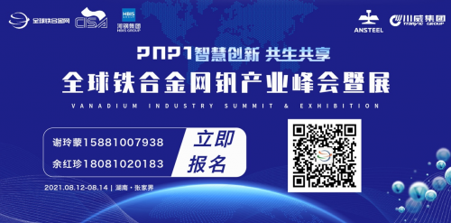 由全球鐵合金網(wǎng)主辦,中國鋼鐵工業(yè)協(xié)會、攀鋼集團(tuán)成都釩鈦資源發(fā)展有限公司、攀鋼集團(tuán)研究院有限公司、河鋼承德釩鈦新材料有限公司、川威集團(tuán)成渝釩鈦科技有限公司鼎力支持的「2021釩產(chǎn)業(yè)峰會暨展」將于2021年8月12日-14日在湖南張家界舉行。