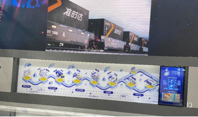 此次準(zhǔn)時(shí)達(dá)展位的另一個(gè)亮點(diǎn)是酷炫滑軌屏 和電子沙盤(pán)“。通過(guò)動(dòng)態(tài)滑軌屏的展現(xiàn),準(zhǔn)時(shí)達(dá)首創(chuàng)的C2M2C模式得以生動(dòng)的展示,C2M2C定義為從制造端到消費(fèi)端的全程供應(yīng)鏈綜合解決方案(從原材料components,到生產(chǎn)制造manufacture,再最終到消費(fèi)者consumer的端到端供應(yīng)鏈管理能力)。