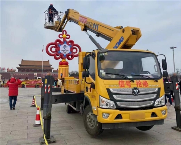 為了迎接冬奧會及中國傳統(tǒng)節(jié)日春節(jié),營造隆重熱烈的氛圍,天安門廣場上搭建了“精彩冬奧”為主題的花壇,以中國結為主景,花壇頂高17米,為五環(huán)環(huán)繞在一起并嵌有雪花圖案,寓意五洲同慶冬奧會。在“精彩冬奧中國結”花壇搭建任務中,歐馬可高空作業(yè)車專業(yè)出擊,以不負所托的載重能力、精益求精的操作系統(tǒng)和超能持久的續(xù)航能力,保障冬奧高空作業(yè)更安全、高效、圓滿地完成搭建任務。