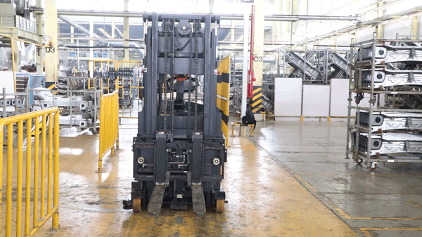 很多工廠車間的現(xiàn)場(chǎng)通道空間非常有限,轉(zhuǎn)彎半徑過大會(huì)嚴(yán)重影響搬運(yùn)的效率。讓平衡重無人叉車應(yīng)用在窄通道場(chǎng)景中,行駛通道同時(shí)對(duì)行駛與轉(zhuǎn)彎半徑做出限制,將對(duì)車體的感知和定位精度和控制能力提出極高的要求。