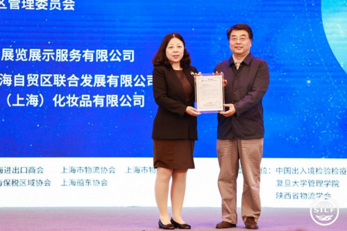 上海現(xiàn)代服務聯(lián)合會代表陳振鴻為元初國際物流有限公司頒發(fā)