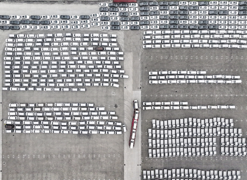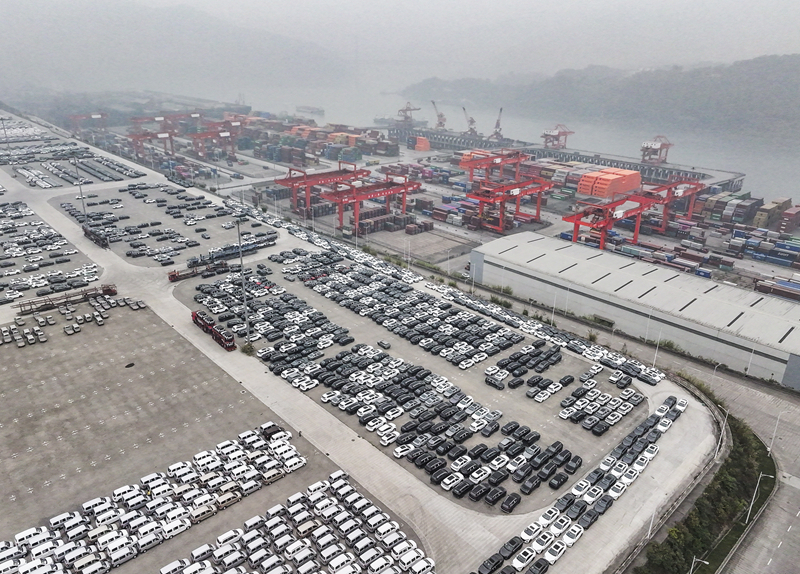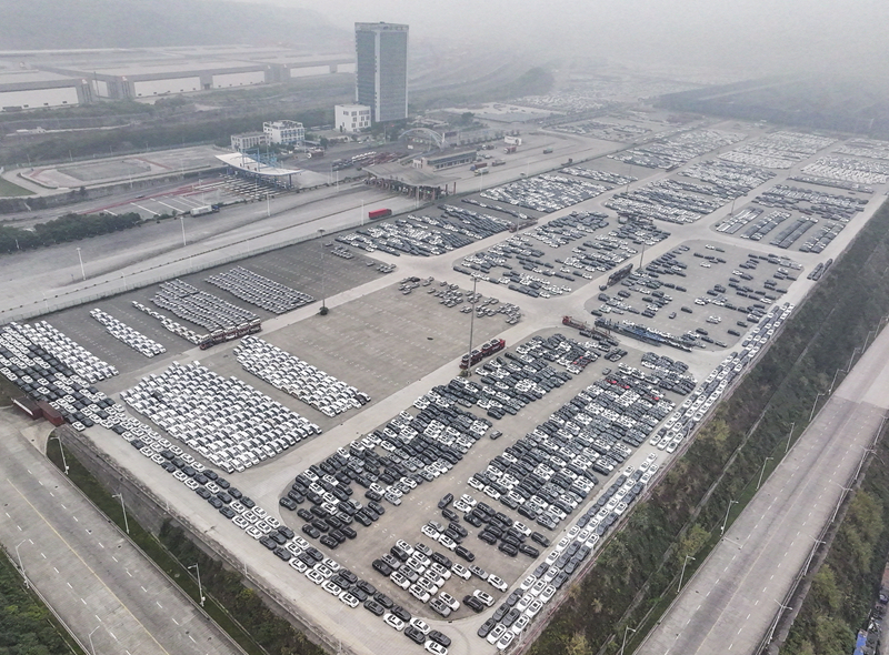 這是2025年1月2日在重慶果園港拍攝的準(zhǔn)備裝運(yùn)的汽車(無人機(jī)照片)。