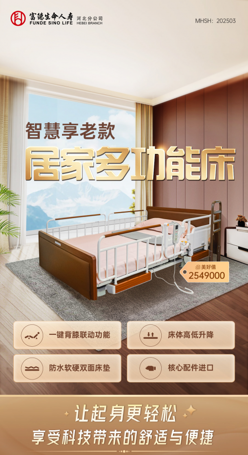 此外,富德生命人壽的適老化改造還涵蓋了洗澡凳、恒溫坐浴器、電動(dòng)升降坐便輔助器、多功能電動(dòng)床等一系列創(chuàng)新產(chǎn)品。這些產(chǎn)品不僅解決了老年人日常生活中的實(shí)際困難,更在無形中提升了他們的生活質(zhì)量。比如,洗澡凳和恒溫坐浴器的設(shè)計(jì),讓老年人在浴室中也能享受到尊嚴(yán)和舒適;電動(dòng)升降坐便輔助器則幫助行動(dòng)不便的老年人輕松如廁;而多功能電動(dòng)床則根據(jù)老年人的睡眠需求,提供了全方位的舒適體驗(yàn)。