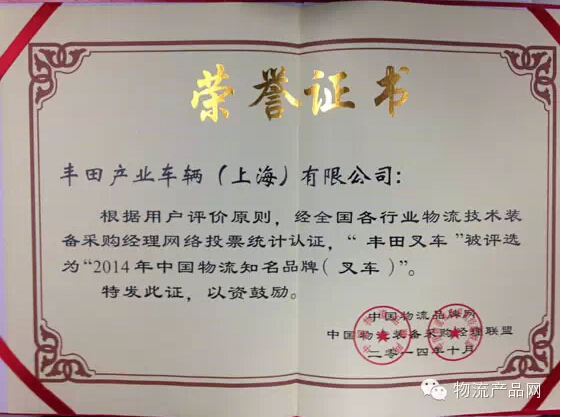 10月28日,由中國(guó)物流品牌網(wǎng),中國(guó)物流裝備采購(gòu)經(jīng)理聯(lián)盟主辦,通過(guò)眾多制造業(yè)物流總監(jiān)、商貿(mào)業(yè)物流經(jīng)理和第三方物流企業(yè)負(fù)責(zé)人在中國(guó)物流品牌網(wǎng)公平、公正、公開(kāi)性的在線投票,豐田叉車(chē)獲選“2014年中國(guó)物流知名品牌”入圍企業(yè)榜單。