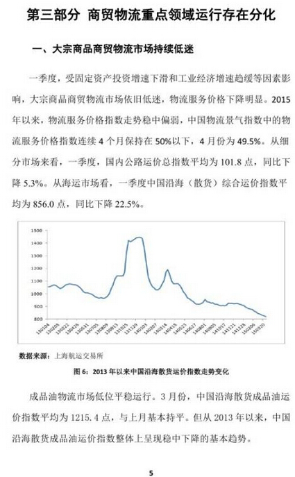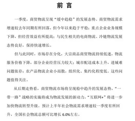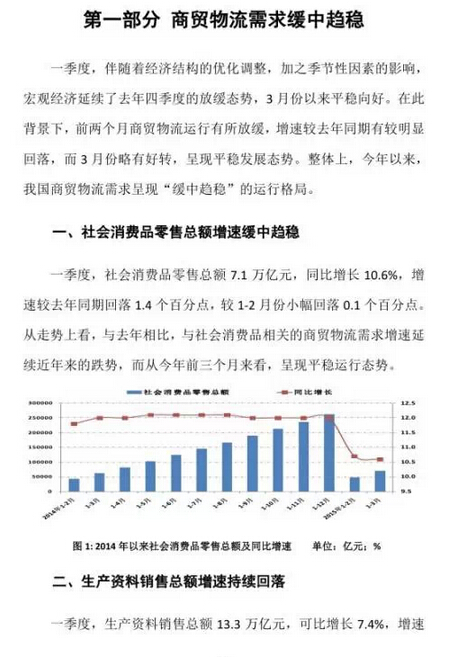 2015年一季度中國商貿(mào)物流運行報告
