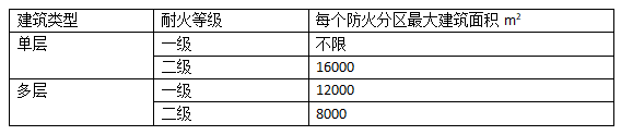 作為丙類二級耐火等級的單層廠房,每個防火分區(qū)的面積為8000㎡,多層廠房為4000㎡,當(dāng)采用自動滅火系統(tǒng)時,其面積可以增加1.0倍。