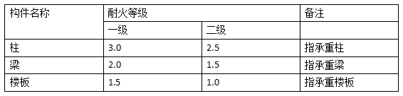 關(guān)于構(gòu)件的耐火等級,應(yīng)符合如下表的要求(參見《建筑設(shè)計防火規(guī)范》表3.2.1):