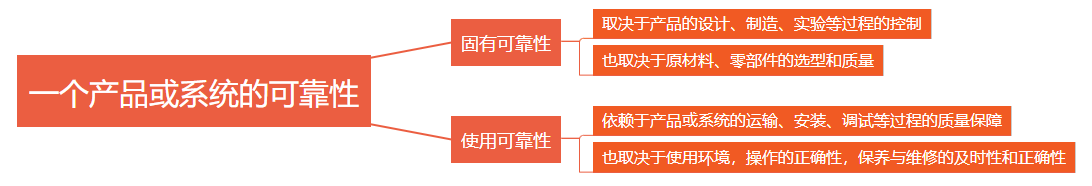 一個產(chǎn)品或系統(tǒng)的可靠性可分為固有可靠性和使用可靠性。所謂固有可靠性是產(chǎn)品所應(yīng)有的或者是設(shè)計時應(yīng)達(dá)到的可靠性,取決于產(chǎn)品的設(shè)計、制造、實(shí)驗(yàn)等過程的控制,也取決于原材料、零部件的選型和質(zhì)量。所謂使用可靠性則是指已生產(chǎn)出來的產(chǎn)品,在經(jīng)過包裝、運(yùn)輸、儲存、安裝、使用、維修等因素影響所表現(xiàn)出來的實(shí)際達(dá)到的可靠性。簡單來說,固有可靠性通過設(shè)計、制造的過程來保證,很大程度上受設(shè)計者和制造者先天的影響。而使用可靠性則依賴于產(chǎn)品或系統(tǒng)的運(yùn)輸、安裝、調(diào)試等過程的質(zhì)量保障,也取決于使用環(huán)境,操作的正確性,保養(yǎng)與維修的及時性和正確性,所以它很大程度上受后天的影響。就像一個人,他有先天的素質(zhì)、遺傳基因,又有后天的教育、努力。
