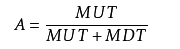 其中MUT為產(chǎn)品或系統(tǒng)平均可用時間長度,MDT為產(chǎn)品或系統(tǒng)平均不可用時間長度。A即為產(chǎn)品或系統(tǒng)的可用度,一般采用百分比來表示。