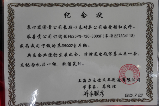 既向上海力至優(yōu)叉車制造有限公司祝賀,同時也要祝賀力至優(yōu)叉車(上海)有限公司,祝彼此在未來會有更蓬勃的發(fā)展與進步。