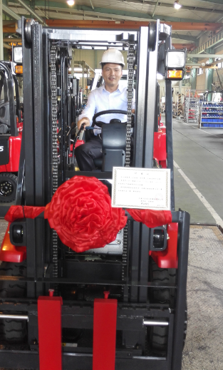 力至優(yōu)叉車(上海)有限公司朱副部長成為首位試駕第25000臺叉車的代表!