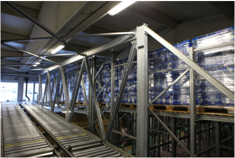 Pearlwater公司采用的解決方案是動態(tài)倉儲系統(tǒng):從一個模具衍生出的整體概念。英特諾在產(chǎn)品開發(fā)之初就以效率和可持續(xù)性為理念:采用節(jié)省空間和能量的托盤式動態(tài)倉儲系統(tǒng)、自動存儲和檢索系統(tǒng)允許能量回收,縮短通道并充分利用高層空間。其傾斜式的流動通道提供5,000多個托盤位,僅僅憑借重力就能驅(qū)動800千克的歐式托盤。無需電機,也無需控制技術。該系統(tǒng)可靠、耐用且智能,是高科技倉儲/檢索解決方案和倉庫管理系統(tǒng)(WMS)控制的完美搭檔。