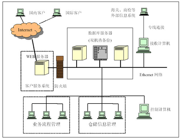 (2)配備了先進(jìn)的物流管理信息系統(tǒng)的軟件和硬件,堅(jiān)持以客戶服務(wù)為中心,在滿足物流儲(chǔ)存的基礎(chǔ)上,具備了倉(cāng)儲(chǔ)信息管理(3PL-WMS)、業(yè)務(wù)流程管理和信息交互平臺(tái)(通過國(guó)際互聯(lián)網(wǎng)Internet)三項(xiàng)功能,可為客戶提供暢通、方便、快捷的一站式服務(wù),并能滿足國(guó)內(nèi)、國(guó)際客戶對(duì)物流信息進(jìn)行實(shí)際狀態(tài)跟蹤和網(wǎng)上業(yè)務(wù)往來的要求,將會(huì)大大增強(qiáng)物流企業(yè)的市場(chǎng)競(jìng)爭(zhēng)力。