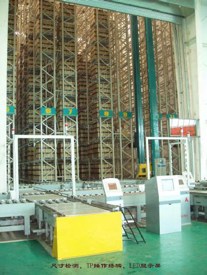 (2)入出庫(kù)輸送區(qū)設(shè)入出庫(kù)水平輸送機(jī)系統(tǒng)1 套,由鏈?zhǔn)捷斔蜋C(jī)、輥式輸送機(jī)和曲柄式輥?zhàn)由蹬_(tái)等單機(jī)(超過200 臺(tái)設(shè)備)組成。該系統(tǒng)可完成入出庫(kù)輸送作業(yè),將人工或叉車裝卸作業(yè)與巷道堆垛機(jī)存取作業(yè)銜接起來。入庫(kù)口配置條形碼閱讀器及單元貨物外形尺寸和重量檢測(cè)裝置,以保證合格的單元貨物安全入庫(kù)。出庫(kù)口配置LED 顯示屏,顯示出庫(kù)貨物信息及揀選和抽樣要求。