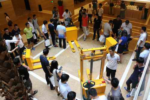 除了以上所提及的產(chǎn)品,現(xiàn)場(chǎng)最為驚艷的無(wú)疑是榮獲2015 IFOY國(guó)際叉車大獎(jiǎng)3.5噸以下級(jí)平衡重式叉車年度大獎(jiǎng)的EFG S30s電動(dòng)平衡重式叉車。EFGS30s出產(chǎn)于德國(guó)莫斯堡永恒力工廠,其先進(jìn)的根據(jù)人體工學(xué)設(shè)計(jì)的操作工作臺(tái)在此次巡演中備受用戶好評(píng)。這一工作臺(tái)設(shè)有整體式直觀的操作界面以及完全重新設(shè)計(jì)的人體工學(xué)扶手。此外,工作臺(tái)配置了操作員對(duì)話系統(tǒng)、新型控制器、彩色TFT顯示屏和USB接口,還可以安裝各種硬件和軟件應(yīng)用程序。 EFG S30s也充分體現(xiàn)了永恒力“Pure Energy”的新理念,不僅極大降低了能源消耗,而且在叉車操作的過(guò)程中,可以進(jìn)行兩班制運(yùn)行,而無(wú)需更換電池。