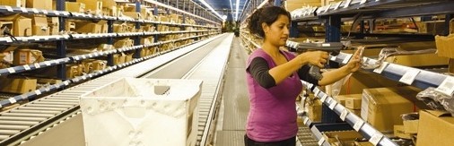 配送中心每天可處理5,000-8,000箱貨品。而在9月中旬到11月底這段最高峰時(shí)期,配送中心每天則要處理12000多箱貨品。附加處理量中有很多來(lái)自網(wǎng)絡(luò)直銷(xiāo)訂單,一般都屬單一品規(guī)。