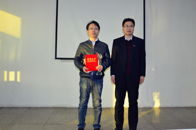 圖二 CEO王永紅為郭引文頒發(fā)“創(chuàng)新狂人”獎(jiǎng)杯、證書和獎(jiǎng)金