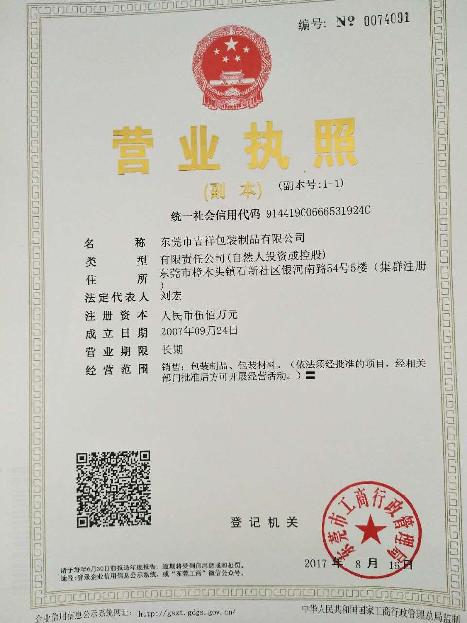 發(fā)證機(jī)構(gòu):東莞市工商行政管理局