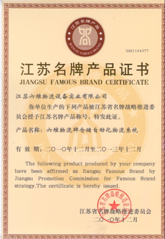 發(fā)證機構(gòu):江蘇省名牌戰(zhàn)略推進委員...