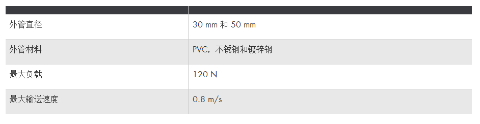 采用插入式座,輥筒完全密封??煞乐顾M入輥筒。輥筒適用于重力驅動型和非驅動型設備,尤其適用于沖洗應用?;瑒虞S承由 PTFE 夾制成,可簡便地卡入 11mm 的六角形孔中。端軸由不銹鋼制成。管端為陷型,便于進行 90° 箱輸送。
