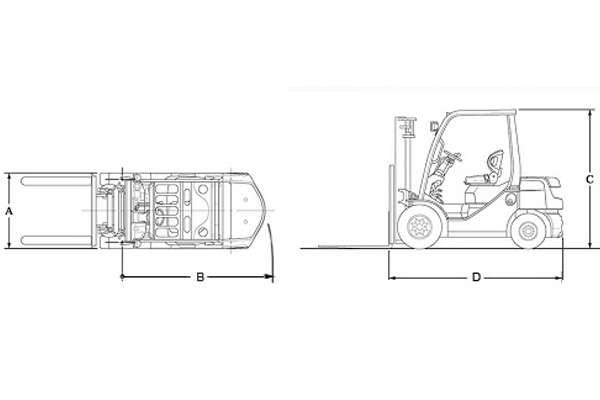 8FD10-35 型號 8FD10 8FD15 8FD20 8FD25 8FD30 8FD35 發(fā)動機型號 1DZ-Ⅱ 1DZ-Ⅱ 1DZ-Ⅱ 1DZ-Ⅱ 1DZ-Ⅱ 1DZ-Ⅱ 額定負載 公斤 1000 1500 2000 2500 3000 3500 負載中心 毫米 500 500 500 500 500 500 全寬 A 毫米 1045 1070 1150 1150 1240 1290 轉(zhuǎn)彎半徑(外側(cè)) B 毫米 1910 1990 2200 2280 2430 2490 護頂架高 C 毫米 2080 2080 2110 2110 2170 2180 至貨叉垂直面的長度 D 毫米 2240 2285 2550 2620 2775 2845