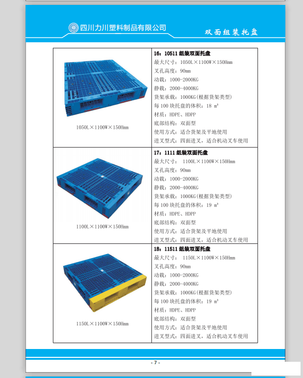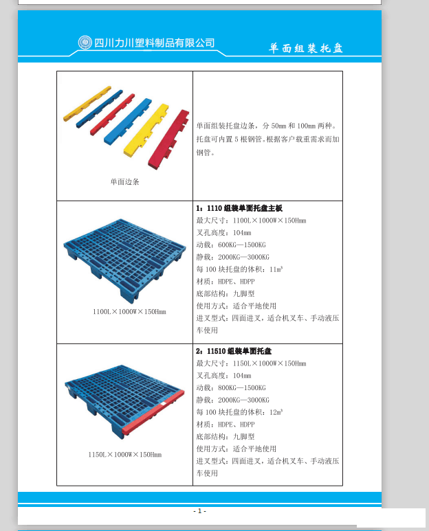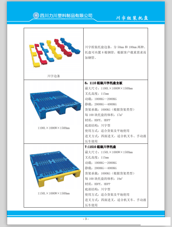 力川的組裝塑料托盤,分主板和邊條兩大部分,主板尺寸為1100x1000mm,邊條不限,主板模具只要4付,通過組裝,就能覆蓋傳統(tǒng)托盤的幾百個尺寸