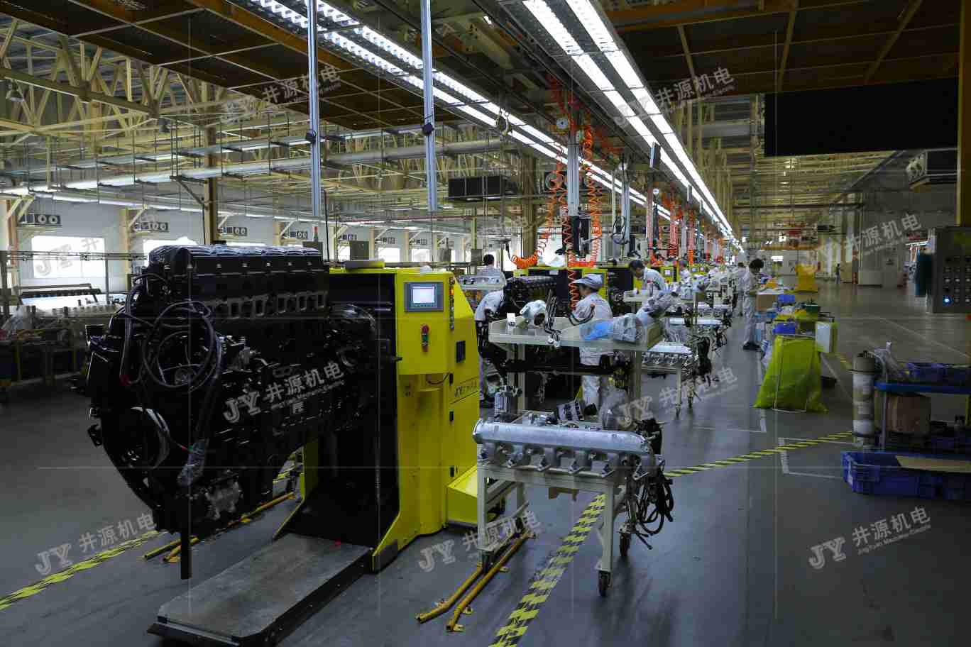 ◆AGV系統(tǒng)與MES通訊,裝配質(zhì)量信息反饋給AGV系統(tǒng),裝配合裝運行至下工位;AGV按照工藝要求和操作者高度,自動升降、旋轉(zhuǎn)發(fā)動機(jī)到最佳的裝配姿態(tài)。