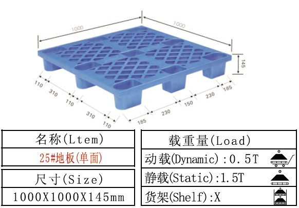 佛山市張洪鑫塑料制品有限公司塑料托盤(塑料卡板):足量添加抗紫外線劑、抗氧劑、放靜電材料及其它助劑,提高了托盤的