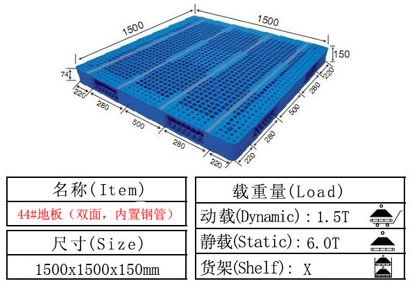 耐老化性、防靜電性、抗沖擊性。雙面熱合平板、一次成型雙面網(wǎng)格、單面川字底、單面田字底、九腳型各種規(guī)格尺寸齊全。適用于