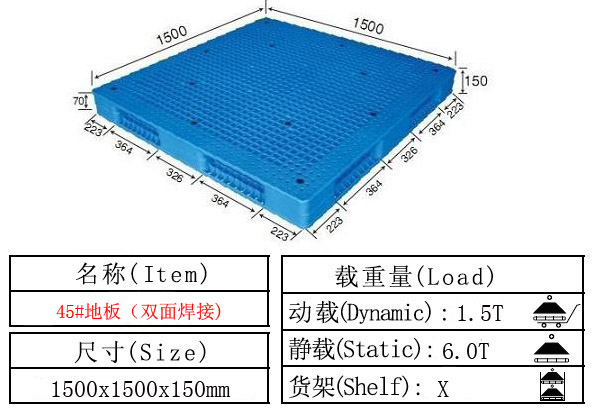 耐老化性、防靜電性、抗沖擊性。雙面熱合平板、一次成型雙面網(wǎng)格、單面川字底、單面田字底、九腳型各種規(guī)格尺寸齊全。適用于
