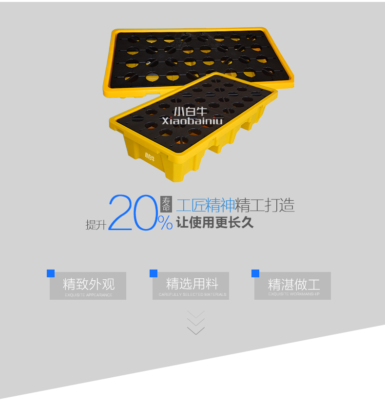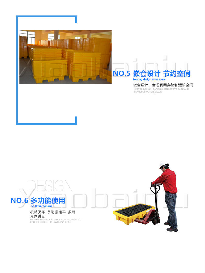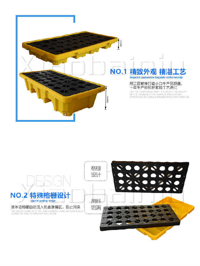 1、防泄漏托盤可配合叉車使用移動方便處理泄漏方便。
