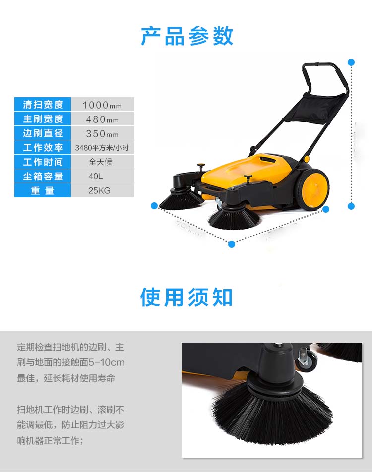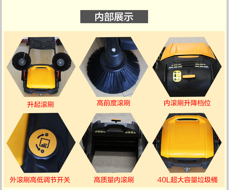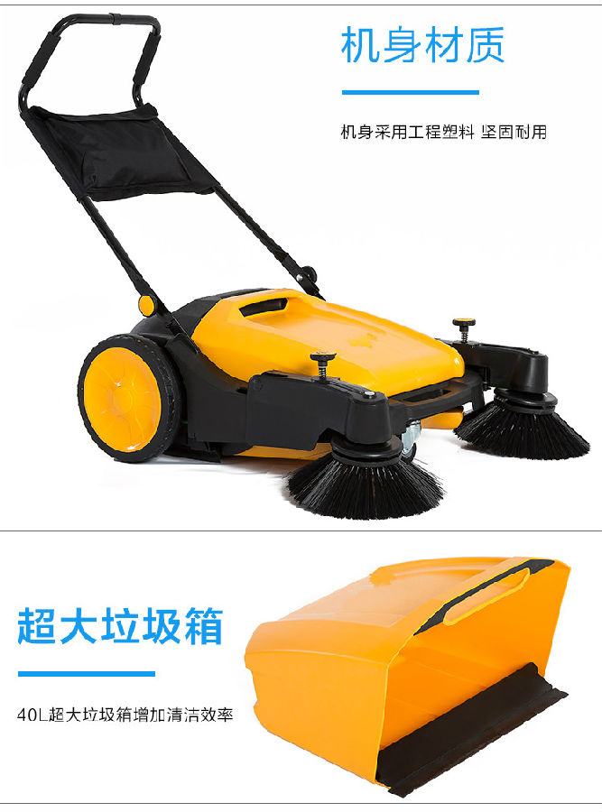 手推式無動力掃地機(jī),無需任何機(jī)電動力,靠后輪驅(qū)動,使得設(shè)備左右轉(zhuǎn)向清掃效果同樣好,同時提供非常好的方向控制。高質(zhì)量可調(diào)節(jié)滾刷適合清掃各種地面。堅(jiān)固的工程塑料機(jī)架,易于調(diào)整的主刷以及邊刷,能夠很好的實(shí)現(xiàn)對垃圾的清掃與收集。