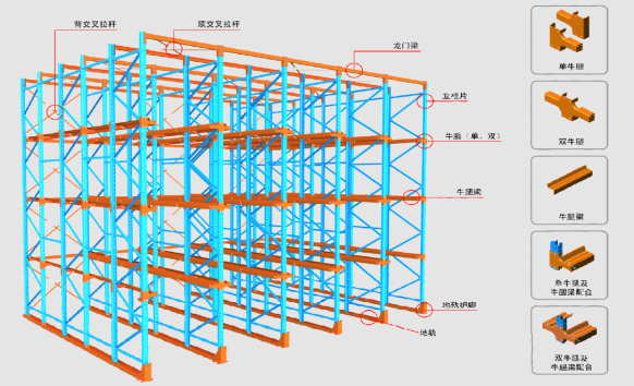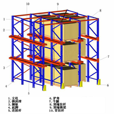 貫通式貨架是重量型貨架的種類(lèi)之一,是由柱片、橫梁、牛腿、牛腿梁和其它固定配件組成。橫梁由橫梁桿和柱卡經(jīng)CO2氣體保護(hù)焊接而成,橫梁與立柱是通過(guò)特制柱卡插接而成,貨架全部采用標(biāo)準(zhǔn)件插接式聯(lián)接,因此具有可靠的穩(wěn)定性。由于固定孔是機(jī)械沖壓而成,從而保證每個(gè)框架是方形。駛?cè)胧截浖馨慈∝浄较蚩煞譃閱蜗蝰側(cè)胧?、雙向駛?cè)胧胶拓炌ㄊ饺N結(jié)構(gòu),單向駛?cè)胧?靠墻區(qū)域)貨架總深度最好控制在10個(gè)托盤(pán)深度以?xún)?nèi);雙向駛?cè)胧?以中間區(qū)域?yàn)榉指艨蓛蛇叴嫒∝?貨架區(qū)域總深度最好控制在20個(gè)托盤(pán)深度以?xún)?nèi),
