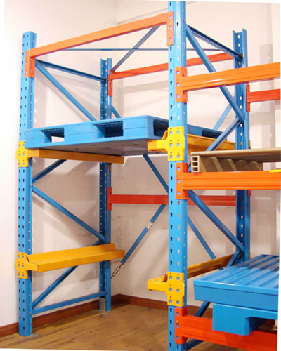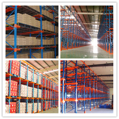駛?cè)胧截浖苁遣孳?chē)駛?cè)腭偝鲐浖軆?nèi)、以托盤(pán)單元貨品進(jìn)行存儲(chǔ)作業(yè)的組裝式貨架。駛?cè)胧截浖苡址Q(chēng)通廊式貨架、貫通式貨架,是采用格構(gòu)式立柱邊續(xù)方式連接起來(lái)的多門(mén)式、托盤(pán)單元化貨品沿深度方向一個(gè)緊接一個(gè)存儲(chǔ)在懸臂梁上的貨架結(jié)構(gòu)形式。這種貨架結(jié)構(gòu)形式可使叉車(chē)作業(yè)通道和貨品存儲(chǔ)空間共用,大大提高了倉(cāng)庫(kù)的空間、場(chǎng)地面積利用率,但同一作業(yè)通道內(nèi)的貨品不能做到先進(jìn)先出,適合于大批量、少品種或作業(yè)通道內(nèi)的貨品一起流向同一客戶(hù)的貨品存儲(chǔ),如飲料、乳制品、煙草、低溫冷凍倉(cāng)儲(chǔ)、標(biāo)準(zhǔn)規(guī)格的家電、化工、制衣等行業(yè)。據(jù)統(tǒng)計(jì),駛?cè)胧截浖芸梢赃_(dá)到最大的存儲(chǔ)密度,空間有效利用率最多可提高到90%,場(chǎng)地面積利用率可達(dá)60%以上。