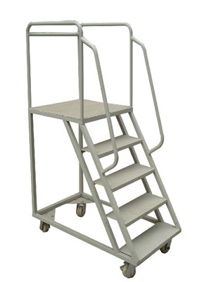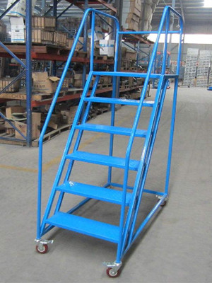 登高車可方便人員站在車平臺上實現(xiàn)存取貨物等作業(yè)行為。登高車的一面設有臺階(臺階旁邊有扶手)供使用者登上平臺,平臺另三面配有護欄保證作業(yè)者的安全。平臺作業(yè)面一般大小可容納1-2人站立、轉身、移動。