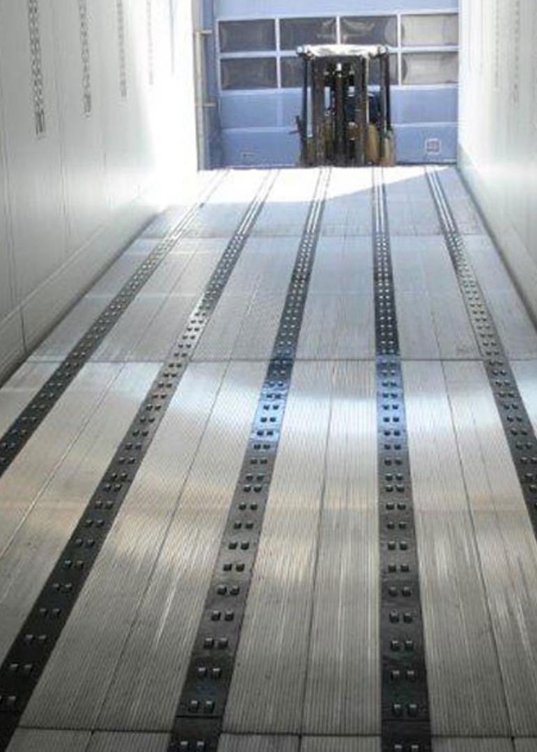 3、安裝后地板上叉車、液壓車、人都可以自由在車內(nèi)活動(dòng),完全不受影響