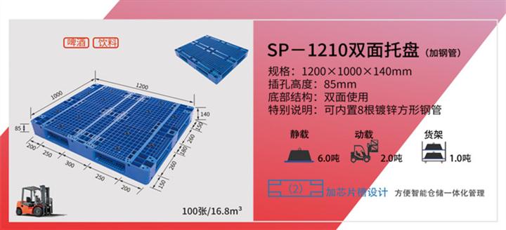 1、可內(nèi)置8根鍍鋅方形鋼管,另外加上雙面設計可以讓托盤用于貨架上,載重1噸