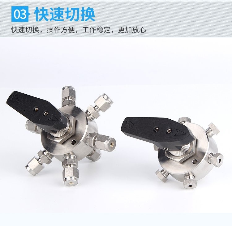6.極其方便的流路設(shè)計(jì)方案,可以選擇從一個(gè)入口有選擇的轉(zhuǎn)到六個(gè)出口,或者從六個(gè)入口到一個(gè)共同出口。