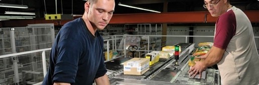 ErgoPall是一款可讓操作員堆放混合產(chǎn)品托盤或滾柱盒的符合人機工程學原理的高性能人工系統(tǒng)。它采用與AMCAP相同的軟件與控制系統(tǒng),料箱排序后將送往操作員,由他將料箱滑入到位。抬舉幾乎消除,而且隨著每層堆放完畢,托盤或滾柱盒將下降,以便進行下一層的堆放。較之常規(guī)的人工堆垛,ErgoPall可實現(xiàn)明顯更快的堆垛速率。