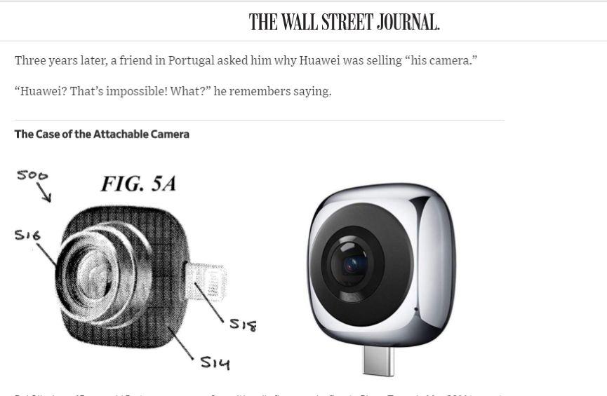《華爾街日?qǐng)?bào)》單方面引用此人的說(shuō)法稱(chēng),在2014年時(shí)華為曾“主動(dòng)”接觸此人,希望購(gòu)買(mǎi)他的攝像頭設(shè)計(jì)專(zhuān)利,但最終未果。可3年后他卻發(fā)現(xiàn)華為卻“竊取”了他的設(shè)計(jì),并開(kāi)始威脅要起訴華為。